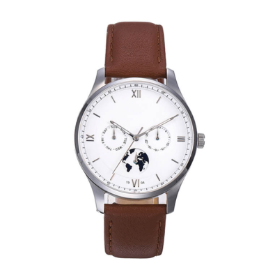 Brown band watches with silver watch case and white watch dial. The watch case back and watch buckle are all used 316 stainless steel.