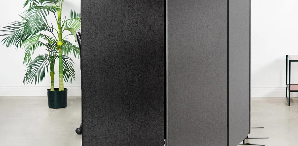 The freestanding acoustic room divider has a C class acoustic rating. They are filled with a special sound-absorbing foam and can be upholstered with the fabric of your choice. Our wide range of colors allows you to choose colors or color combinations that work best for your office.