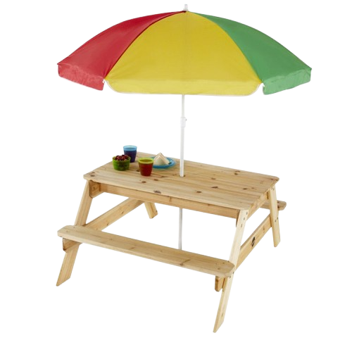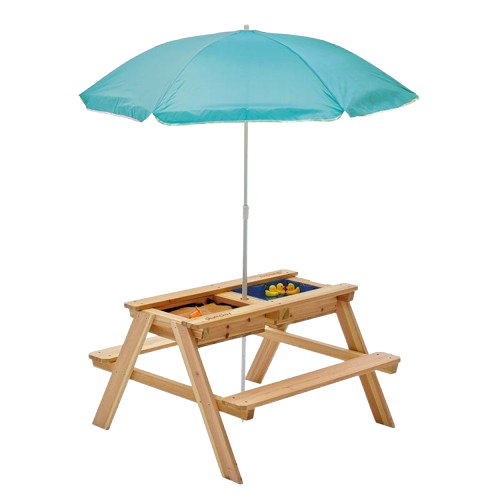 Benefits of the Plum® Surfside Wooden Sand & Water Picnic Table with Parasol - Natural: