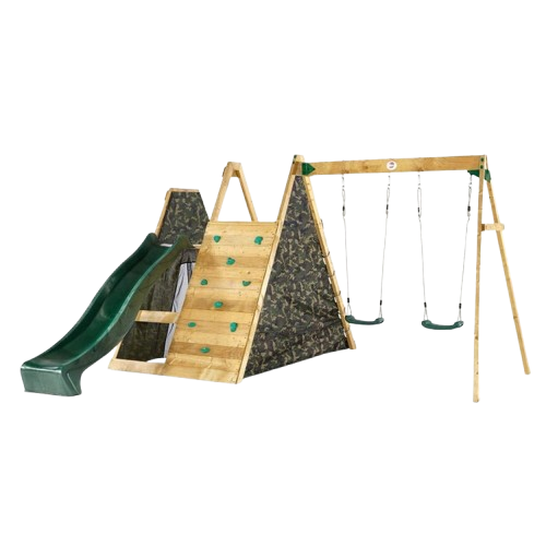 For families looking for a more adventurous option, the Plum Climbing Pyramid Playset with Slide and Den with Optional Swing offers a dynamic and versatile play experience. This wooden climbing frame is perfect for children who enjoy physical challenges and imaginative play.