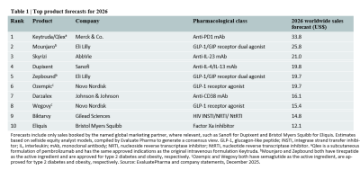 The 2026 forecast, estimating $198 billion in total sales for the top 10, reflects a focus on chronic disease innovation: