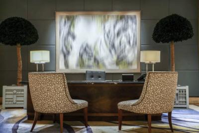 Some artwork is exciting in a gallery setting, but distracting in a workspace. When your goal is hotel calm, avoid pieces that feel visually crowded: overly dense patterns, competing focal points, or high-contrast chaos that keeps pulling attention away from tasks and conversations.