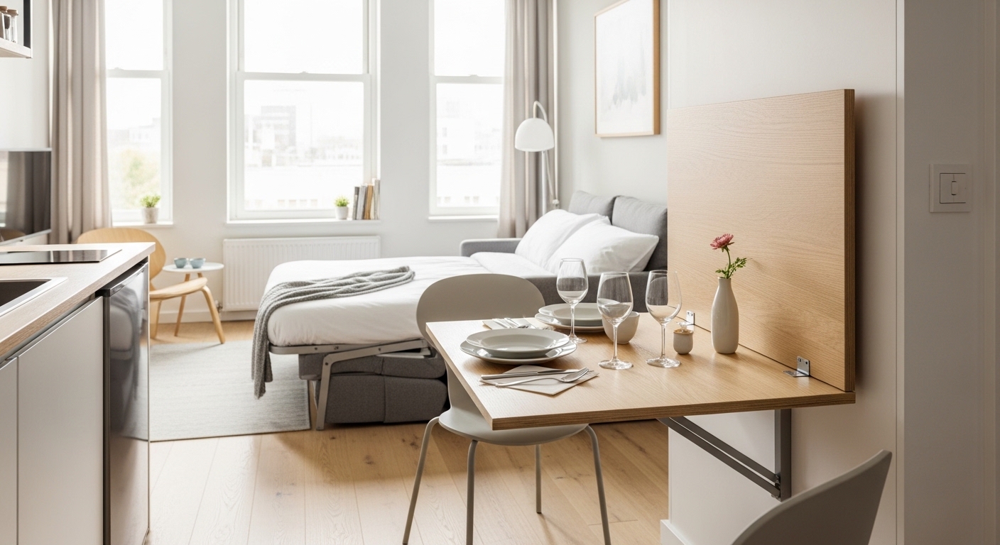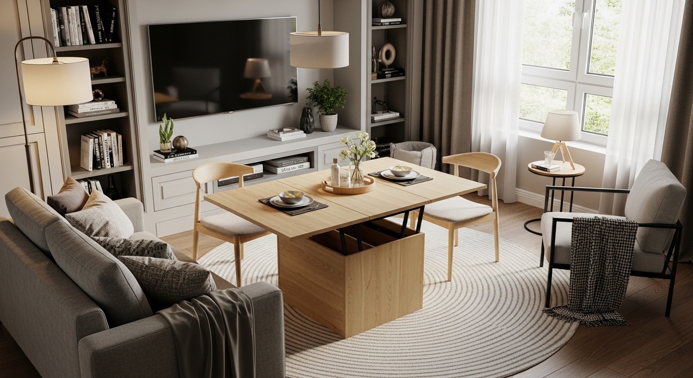 אחד הפתרונות היצירתיים ביותר לחללים קטנים הוא קונסולה נפתחת לשולחן אוכל. זהו רהיט שבמצב הרגיל משמש כקונסולה צרה לכניסה או למסדרון, ובמידת הצורך נפתח לשולחן אוכל מלא. קונסולות כניסה עם יכולת הרחבה הן השקעה חכמה במיוחד לדירות קטנות.