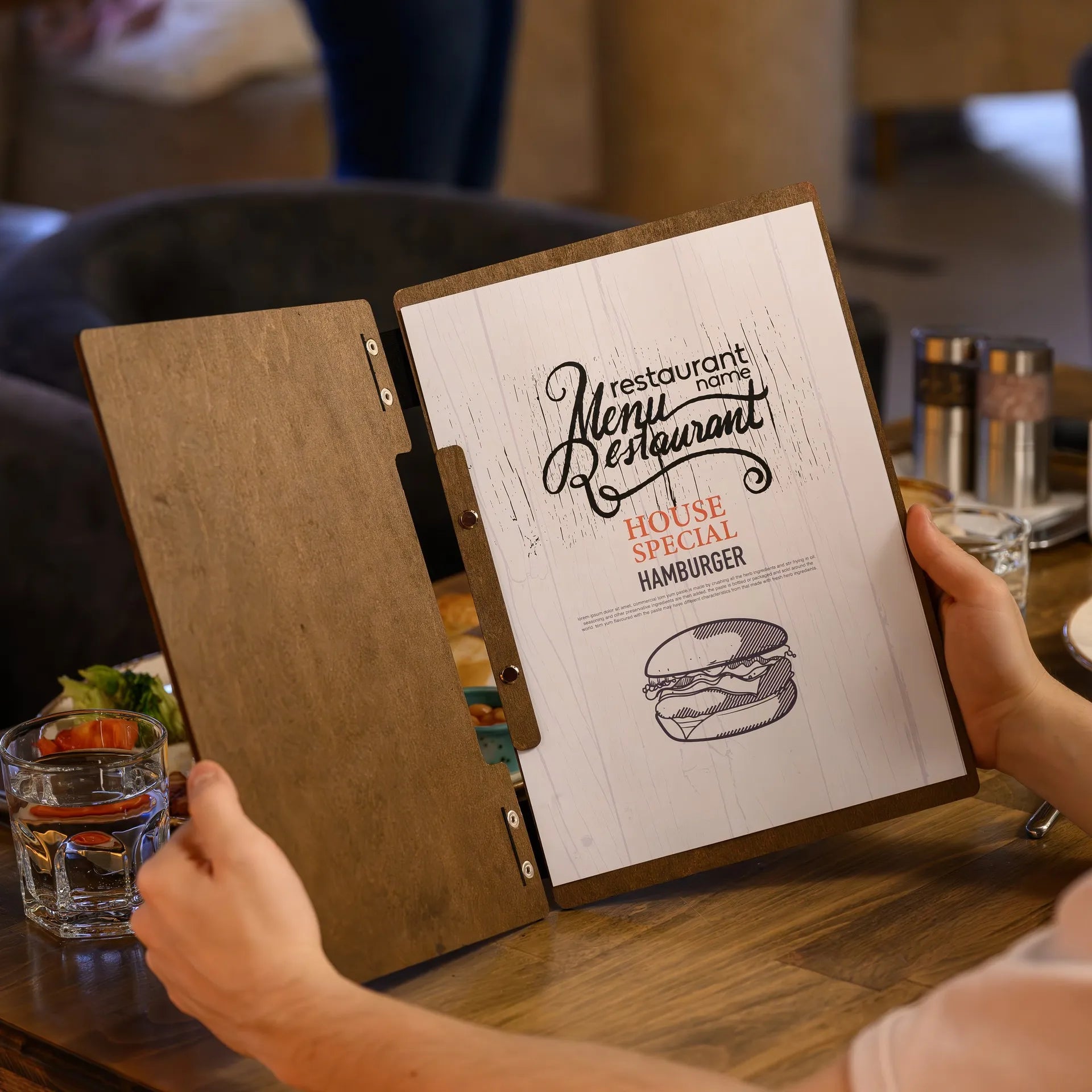 Menu holders, like other elements of decor, should blend seamlessly into the overall concept of your interior. They can be used to reinforce your brand style and create a unified visual image that will stick in your guests’ minds. If your dishes are works of art, the presentation of your menu should be equally sophisticated.