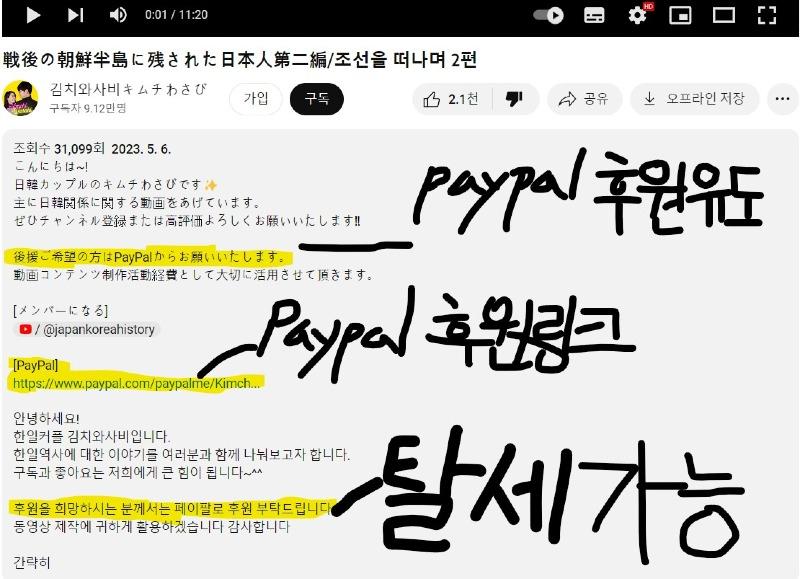 아 그리고 친일유튜버들 후원하는