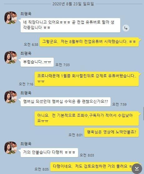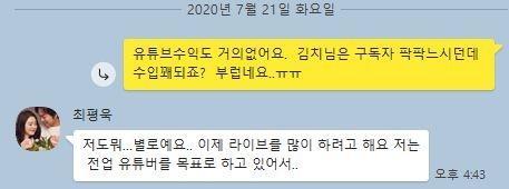 카톡내용보면 스스로 회사그만두고 전업유튜브