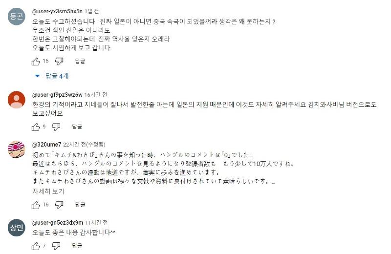 일본인들이 있기때문입니다. 김치와사비라는 유튜버가