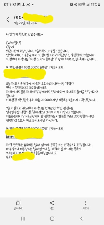 밤에 보이스 피싱 문자를 받았는데요.